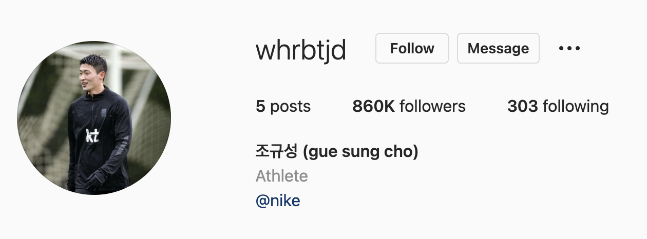 86만 -> ?? 팔로워 조규성 인스타그램 확인하러 가기