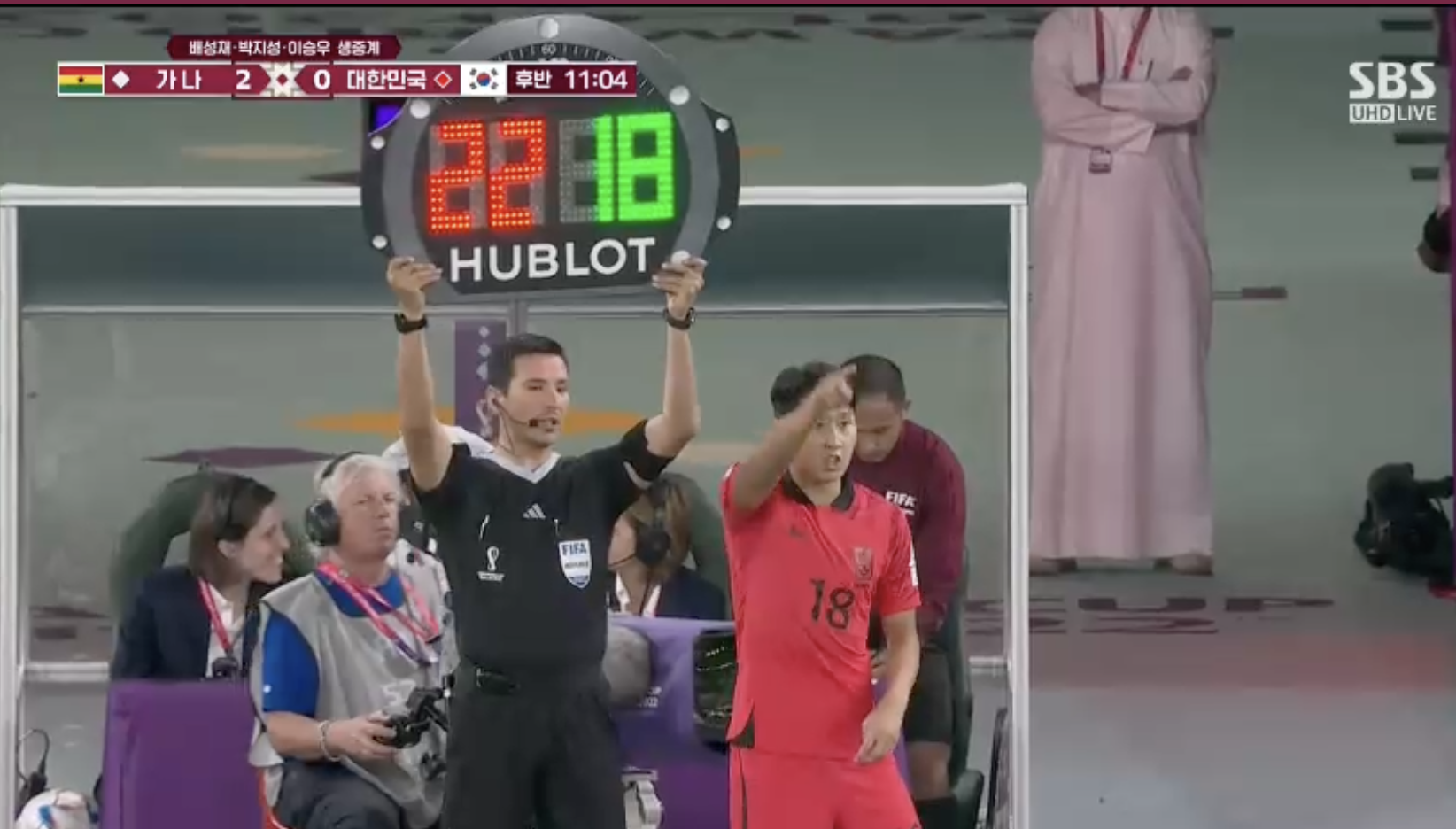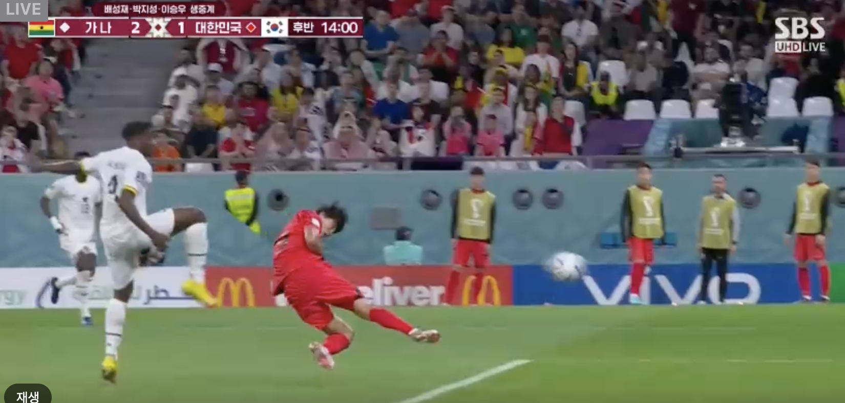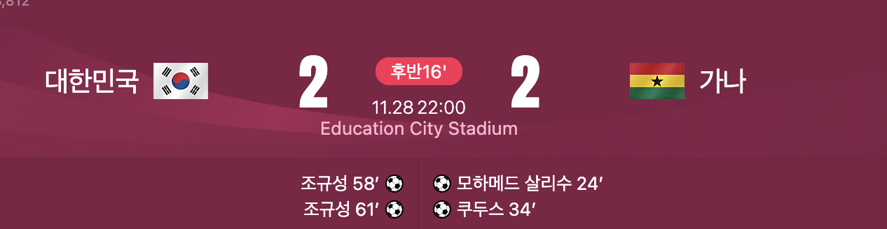 가나에게 2:0으로 끌려가던 중,,,