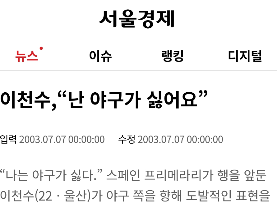 한편 이천수가 과거 야구가 싫다는 발언을 했다며 다시 이슈가 되고 있는데요.