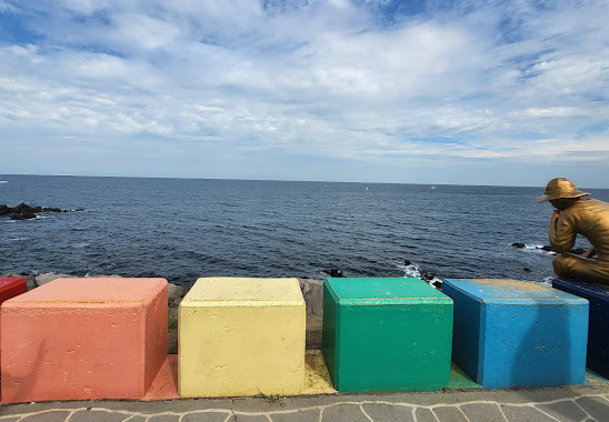 공항에도착했다면 바로 도두동 무지개 해안도로로 향해보자 10분이면 충분하다 . 안전을 위해 해안도로를 따라 설치된 방호벽에 칙칙한 것 보다는 색을 입혀보자는 주민들의 의견을 반영하여 무지개색으로 칠했는데, 관광객들 사이에서 무지개 해안도로로 불리면서 명소가 되었다. 주변에는 해녀상을 비롯한 여러 조각상이 있어 구경하는 재미가 있다. 근처에는 걸어서 이동이 가능한 곳에 도두봉이 있는데, 올레길 코스이면서 숨은 비경 중 하나이다. 경사가 완만하여 오르기 어렵지 않다.