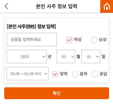 이 홈페이지 역시 성별, 생년월일, 태어난 시간을 입력하면 다양한 사주 분석 서비스를 경험하실 수 있습니다.