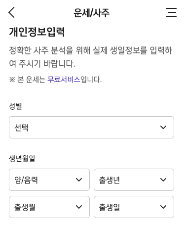 태어난 날짜, 시간을 입력하면 10초안에 운세확인이 무료로 가능합니다.
